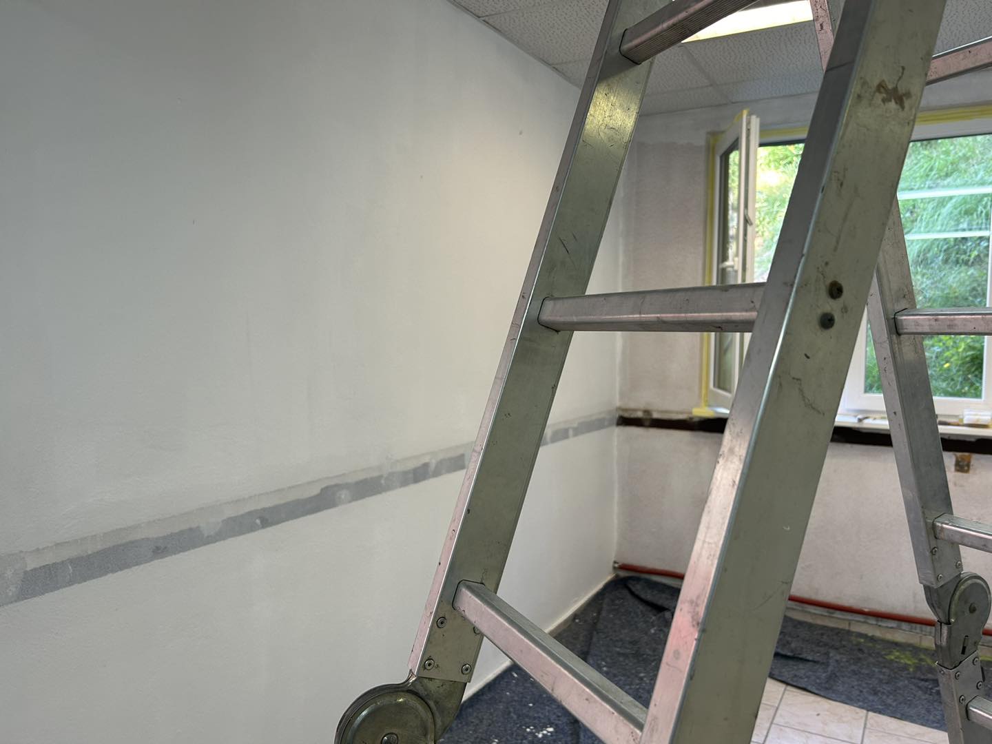 An unseren neuen Standort haben die ersten Arbeiten begonnen. Alte Kabelkanäle, Schalter und Steckdosen wurden demontiert.