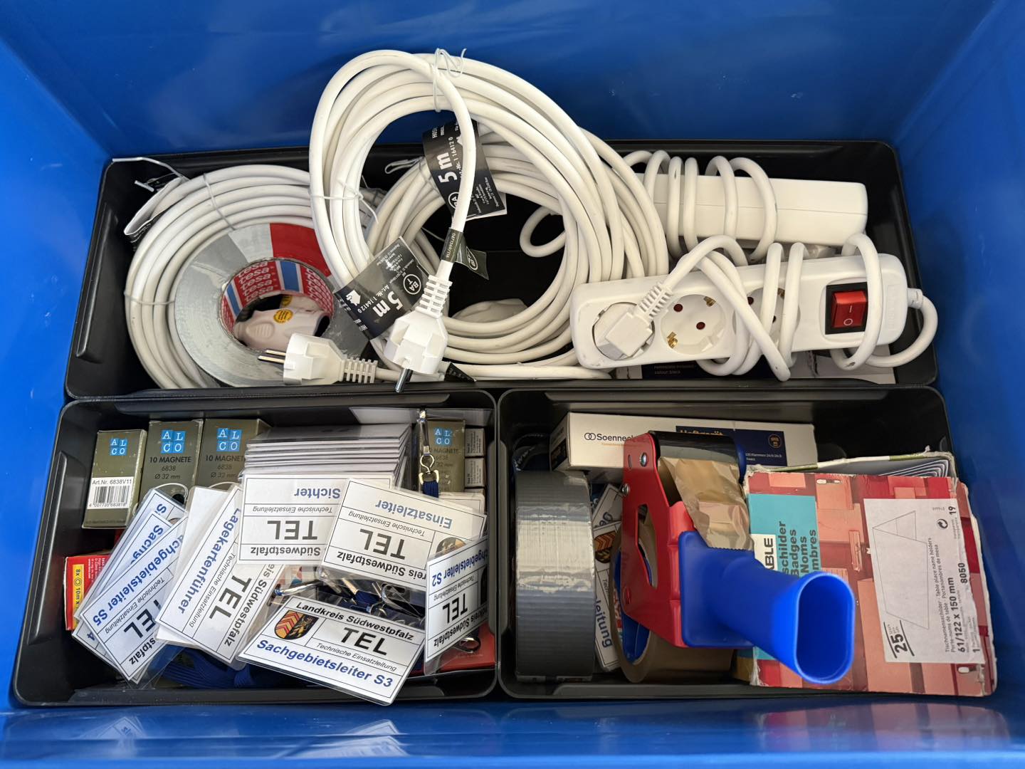 Diese Kisten sind für die Sachgebiete in der Technischen Einsatzleitung. Alle sind gleich ausgestattet.