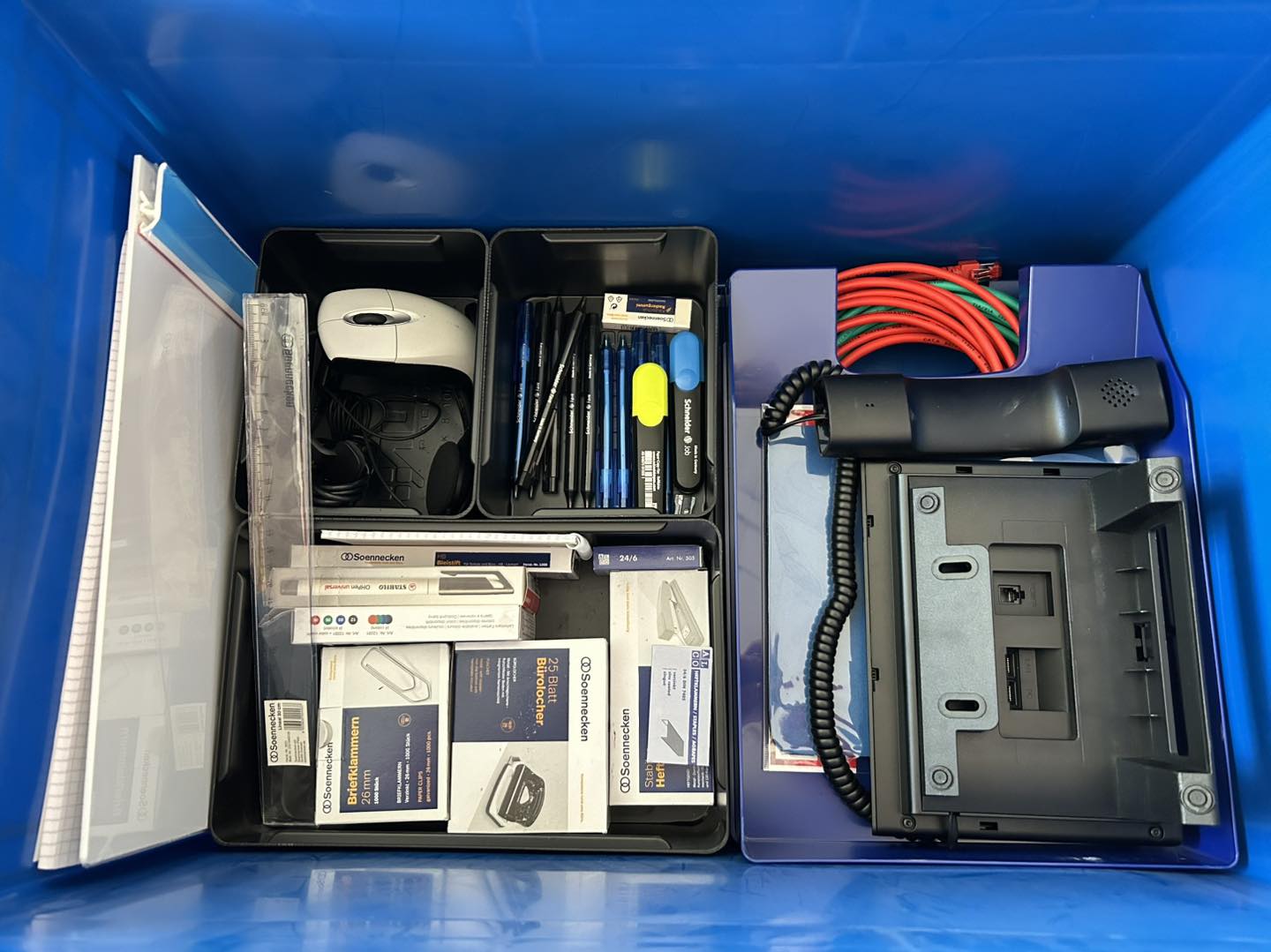 Ganz zum Schluss sind noch drei Kisten mit Einsatzunterlagen, Vordrucke und Papier für die Technische Einsatzleitung verladen. Somit haben wir den Rollcontainer TEL sehr ausführlich vorgestellt.